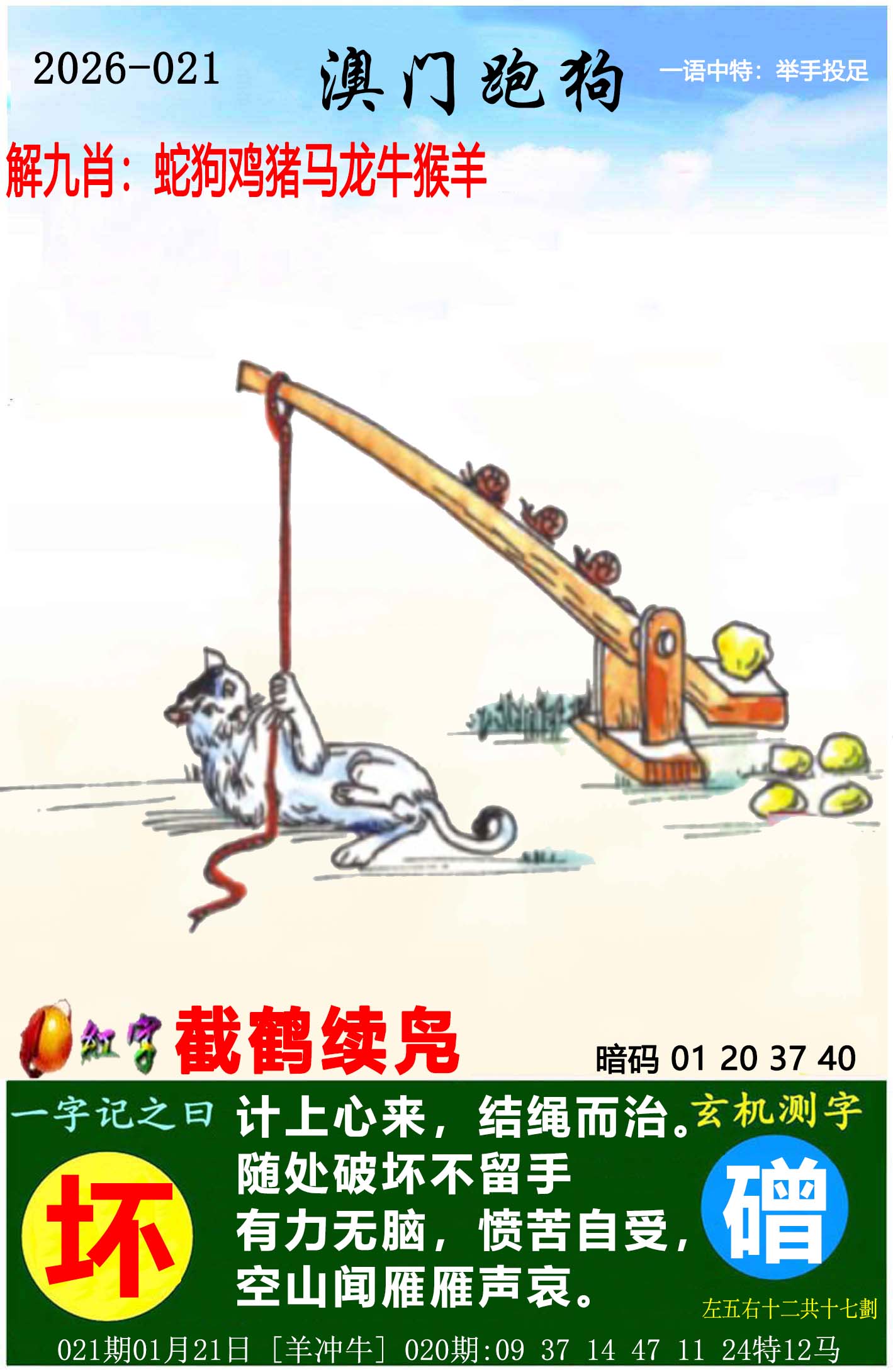 019期正版彩图: 挂:17 爆:狗 挂牌成语:铜驼草莽 挂牌出肖:马猴羊猪蛇狗。